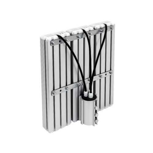 Светодиодные прожекторы со вторичной оптикой и различными углами рассеивания. Применяются при большой высоте подвеса, для освещения больших территорий и в местах, где требуется узкая кривая силы света (КСС).